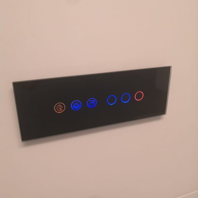 מפסק חכם 6 הדלקות מאפשר לכם שליטה נרחבת ואינטגרלית בבית החכם. חברת homeetec הינה אחת מהחברות המצליחות והפופולריות בארץ בתחום שיווק והתקנת מוצרים ותשתיות לבית החכם, כאשר מפסק חכם עם 6 הדלקות בטכנולוגיית WIFI הוא פיתרון ייחודי ובלעדי לחברה. מפסק חכם לתאורה מאפשר לכם להקליק בנגיעה קלה ולשלוט בהפעלה וכיבוי של מספר גופי חשמל כלשהם – למשל גופי תאורה או תריסים חשמליים. תוסיפו לזה את האפשרות של יכולת הפעלה מרחוק וכמובן עיצוב אלגנטי מהרמה הראשונה, ויש לכם בית חכם שכיף לגור בו.