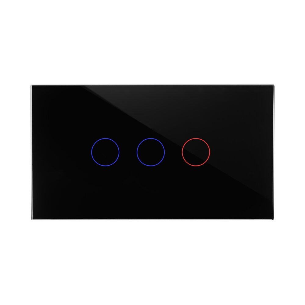 מתג טאץ' חכם לתאורה – שלשה לחצנים, זכוכית לבנה, 4 מודול, WiFi