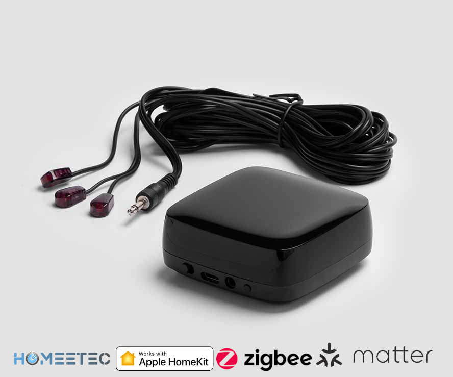 – תיאור: בקר IR נסתר לבית חכם HideIR מבית הומיטק תואם Homekit/Matter